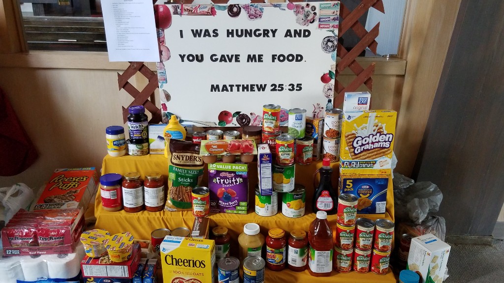 We reach out to address food insecurity in our local community. Anyone can pick up at any time whatever is available in our Little Food Pantry in our church parking lot.